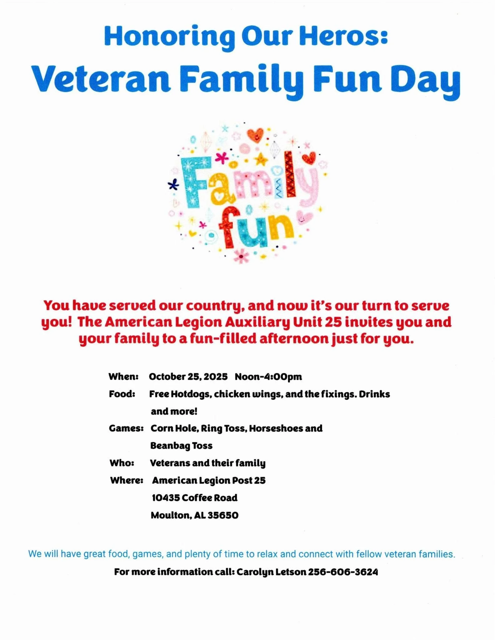 Join the American Legion Auxiliary Unit 25 for a fun-filled afternoon dedicated to veterans and their families!